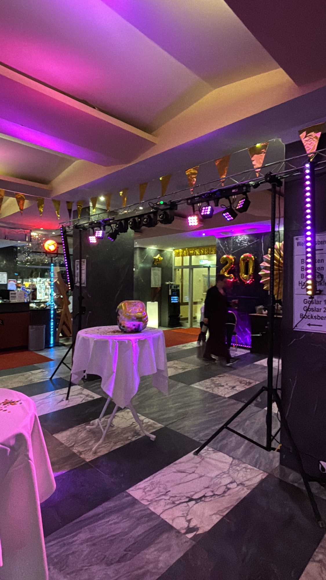 Zusätzlich bieten wir Dekobeleuchtung, die gezielt Akzente setzt und besondere Bereiche deiner Veranstaltung hervorhebt. Egal ob für Hochzeiten, Firmenfeiern oder private Partys – die Ambiente Beleuchtung verwandelt jeden Raum in eine stimmungsvolle Kulisse. Lass deiner Kreativität freien Lauf und gestalte mit unserem Lichtkonzept die perfekte Atmosphäre für deine Event.